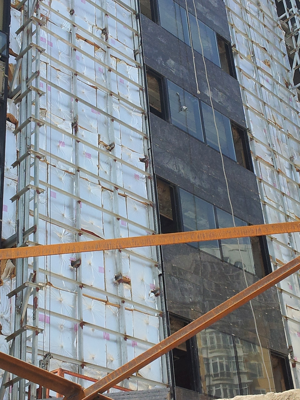 欧文斯科宁幕墙专用玻璃棉一般采用28~36kg/m3,降低单元幕墙板的自重,对单元结构幕墙的工厂化制作、搬运、吊装、悬挂等过程的效率及安全性更为有利。