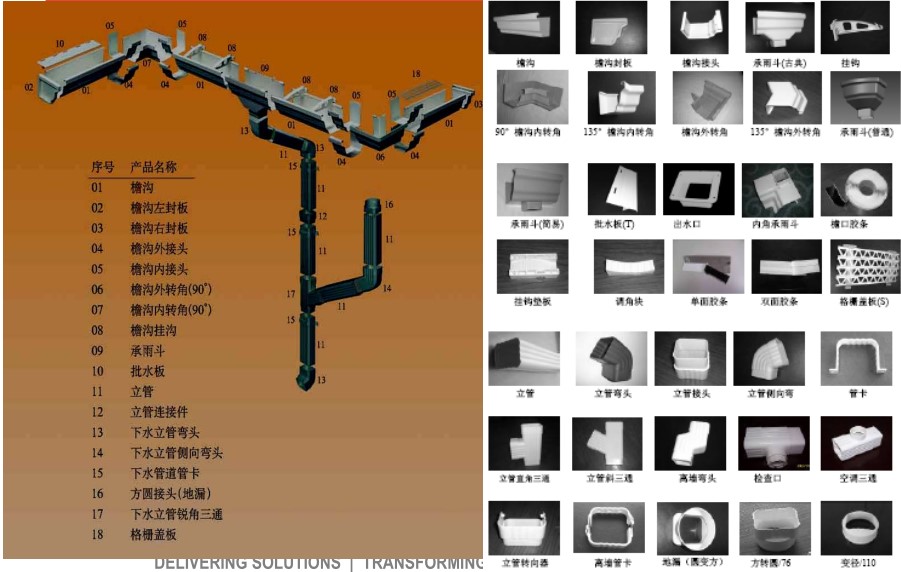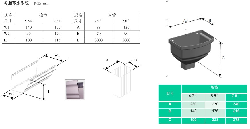 落水管件厚度:檐沟部分—2.5mm;立管部分—2.5mm。