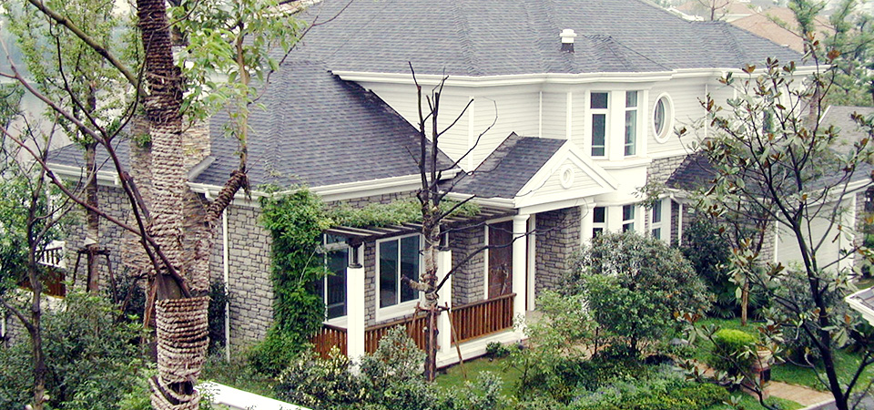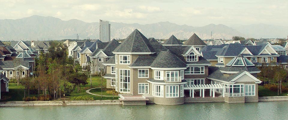 位于北京大兴区的龙熙顺景别墅,采用我司欧文斯科宁玻纤瓦和落水系统。2005。