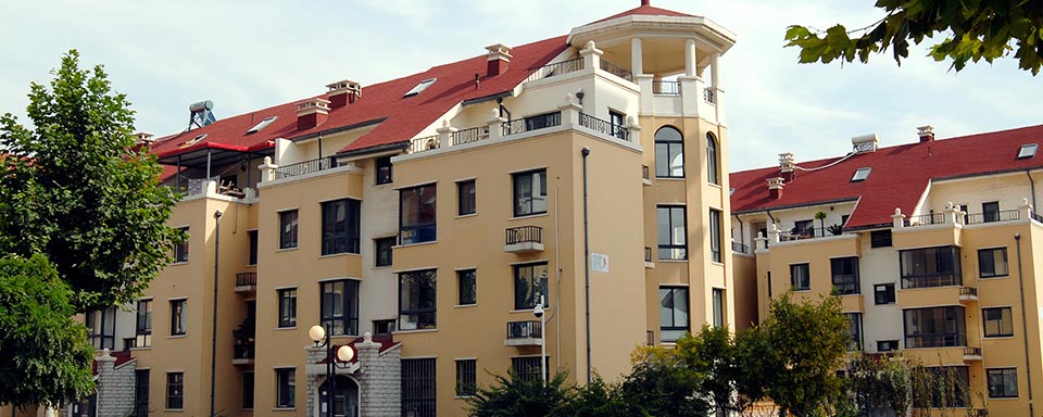 河北廊坊国际花园采用了我司欧文斯科宁玻纤瓦、挂板、落水系统。2004。