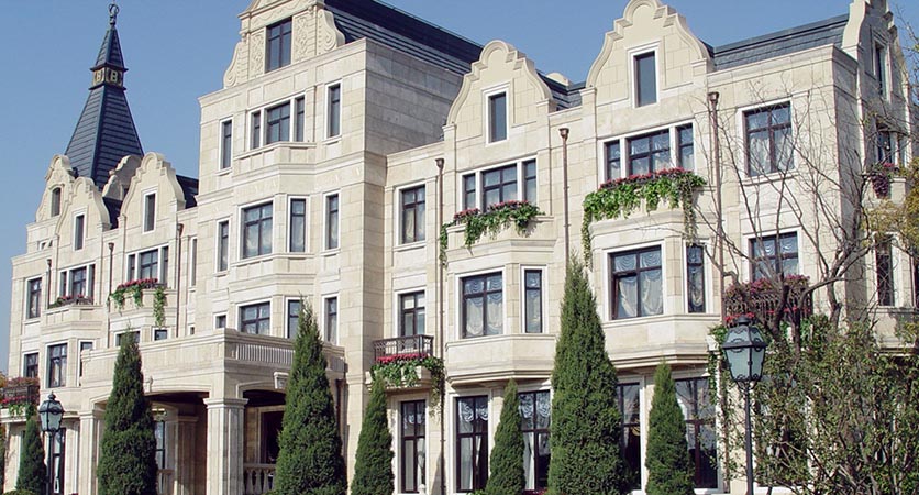 宁夏沙湖假日酒店采用我司欧文斯科宁朗基石、落水系统、STO外墙涂料和西班牙陶瓦。2009。